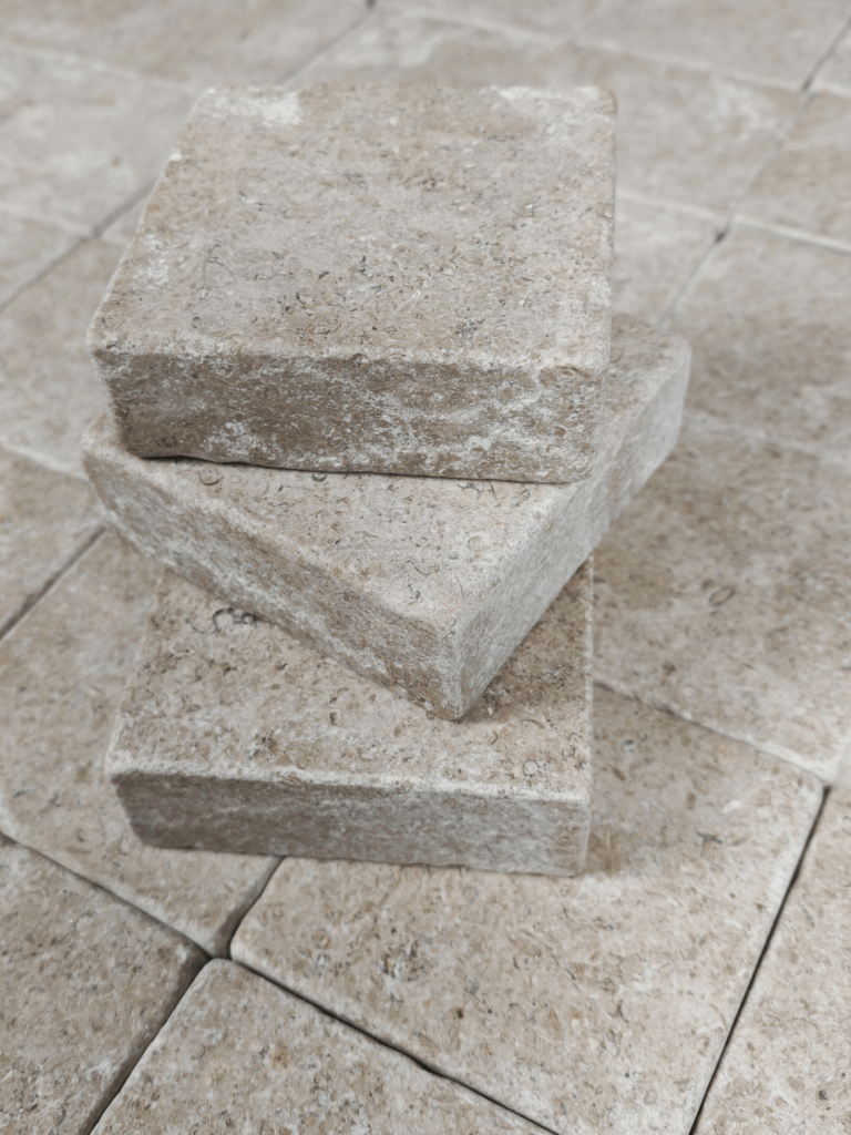 LAPIDE Pavers Tavira TA20 – 32P heeft een getrommelde en geëtste afwerking die de warme kleurnuances subtiel accentueert. Het compacte vierkante formaat zorgt voor een evenwichtig en ritmisch legpatroon, ideaal voor patio’s en tuinen. Dit formaat brengt structuur met behoud van natuurlijke zachtheid.