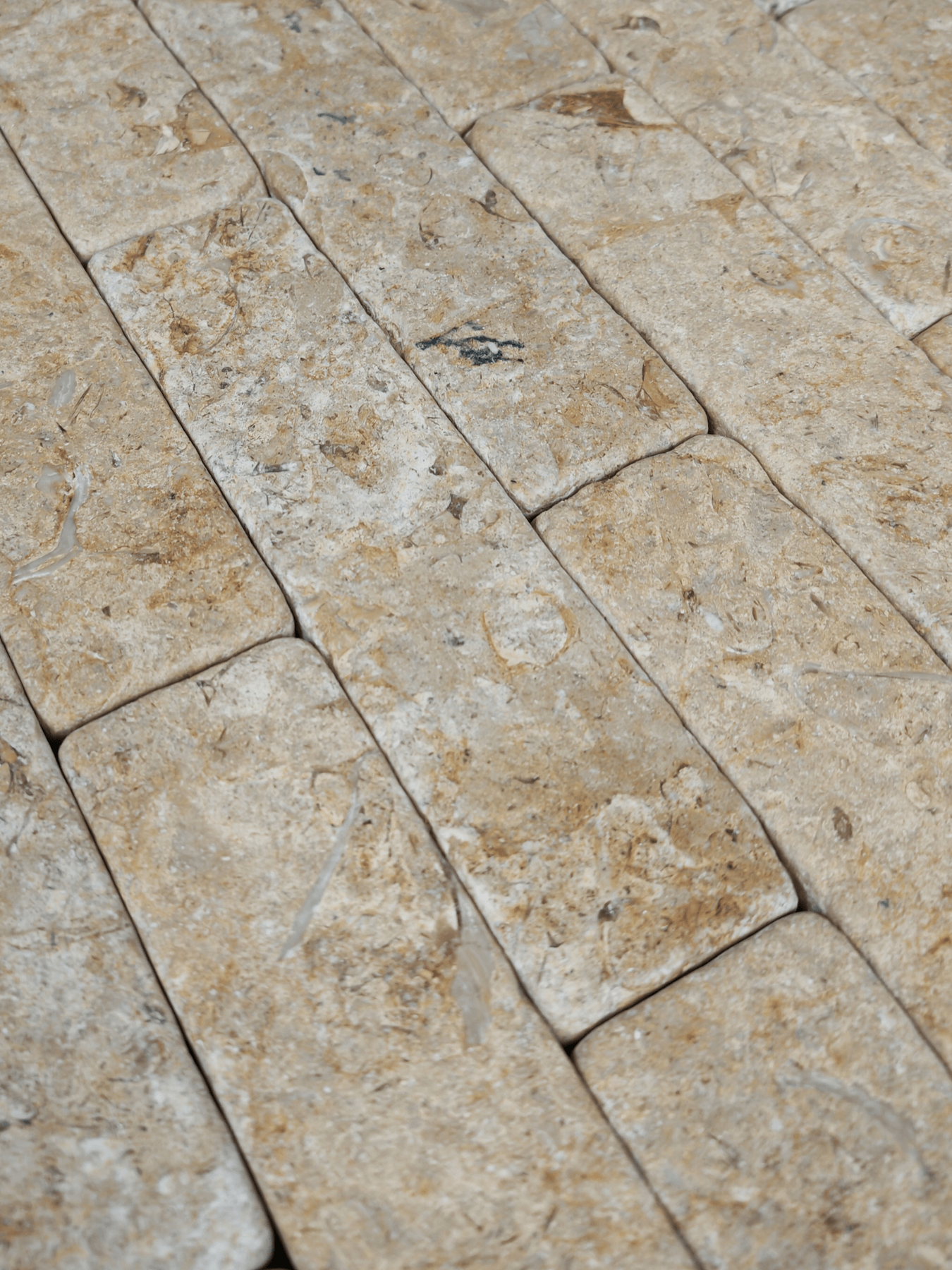 LAPIDE Pavers Sabra SA20 – 32P heeft een getrommelde en geëtste afwerking die diepere beige nuances naar voren brengt, terwijl het oppervlak zacht en verfijnd blijft. Het langgerekte formaat zorgt voor een strak architectonisch verloop, ideaal voor terrassen met mediterrane warmte en subtiele diepte.