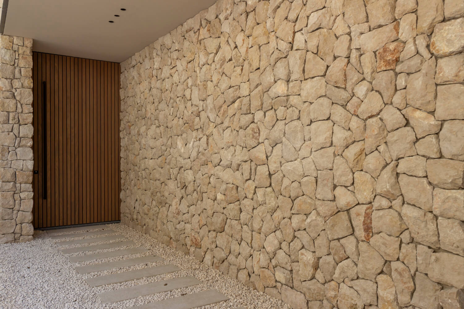 Lapide Rocks Christiani CH12R is a robust natural stone with warm beige tones and an expressive texture. Its organic character makes it ideal for Mediterranean-inspired architecture, from Ibiza-style garden walls to striking façade accents and outdoor eye-catchers.