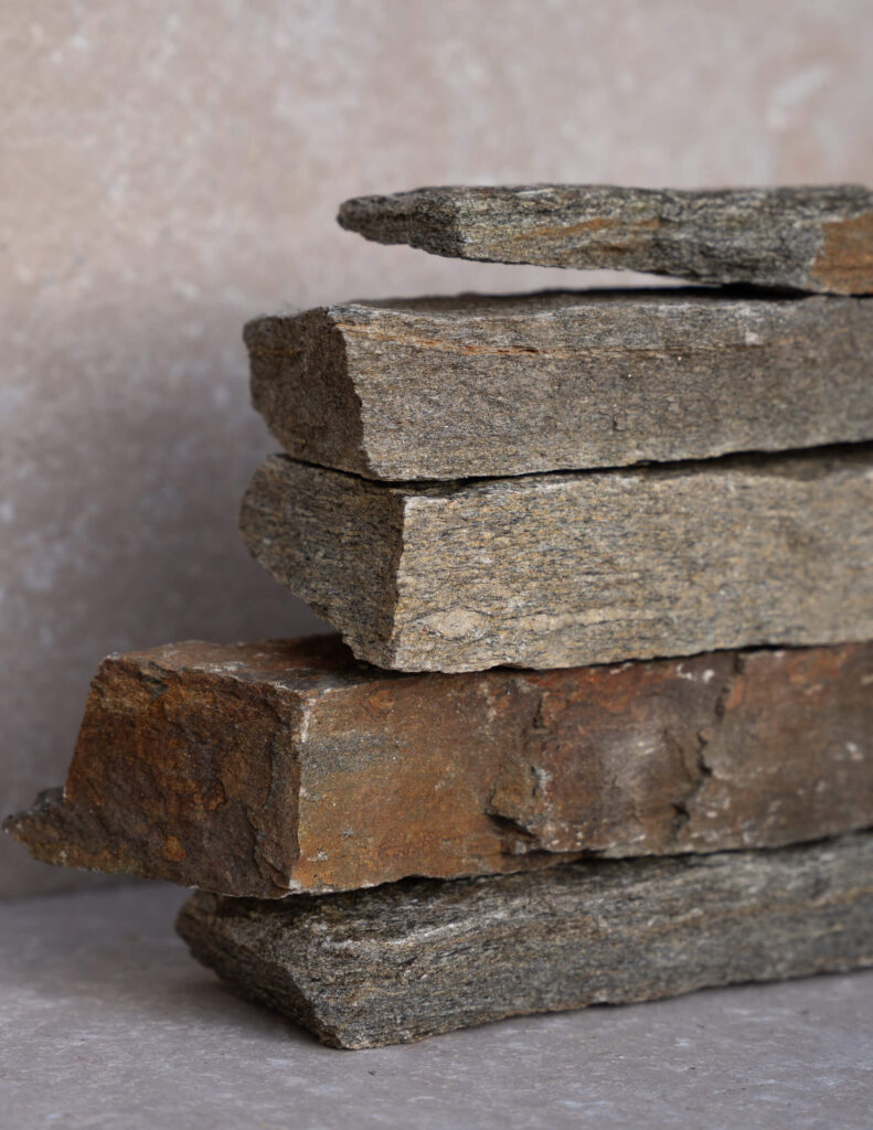 As a layered gneiss, Miroslav MS12R features subtle depth and a refined natural texture that pairs effortlessly with materials such as wood, black accents, glass or smooth plaster. Supplied in free lengths, with heights of 40–80 mm and thicknesses of 90–110 mm, each stone is unique, creating organic compositions that feel timeless and deeply connected to their surroundings.