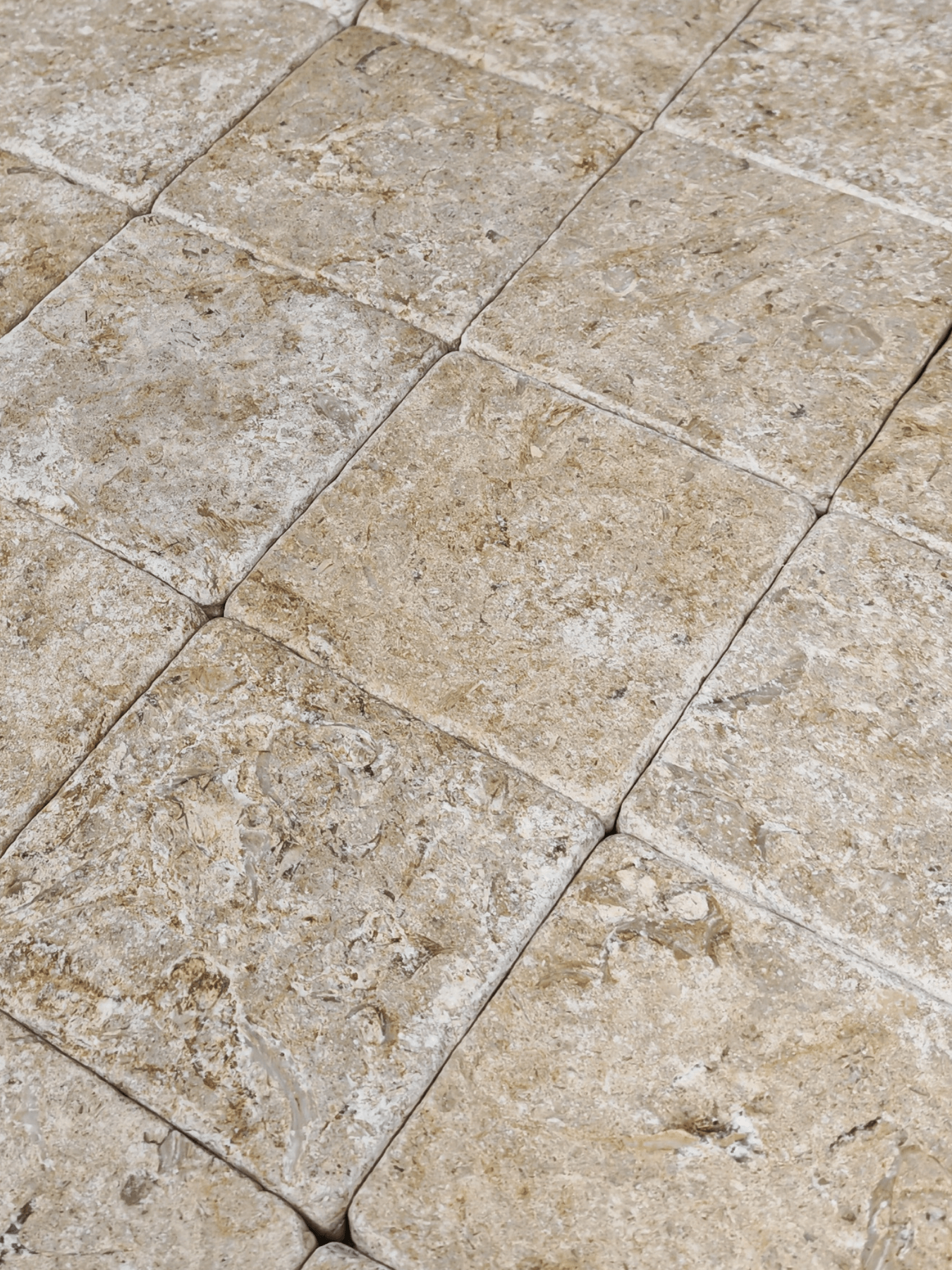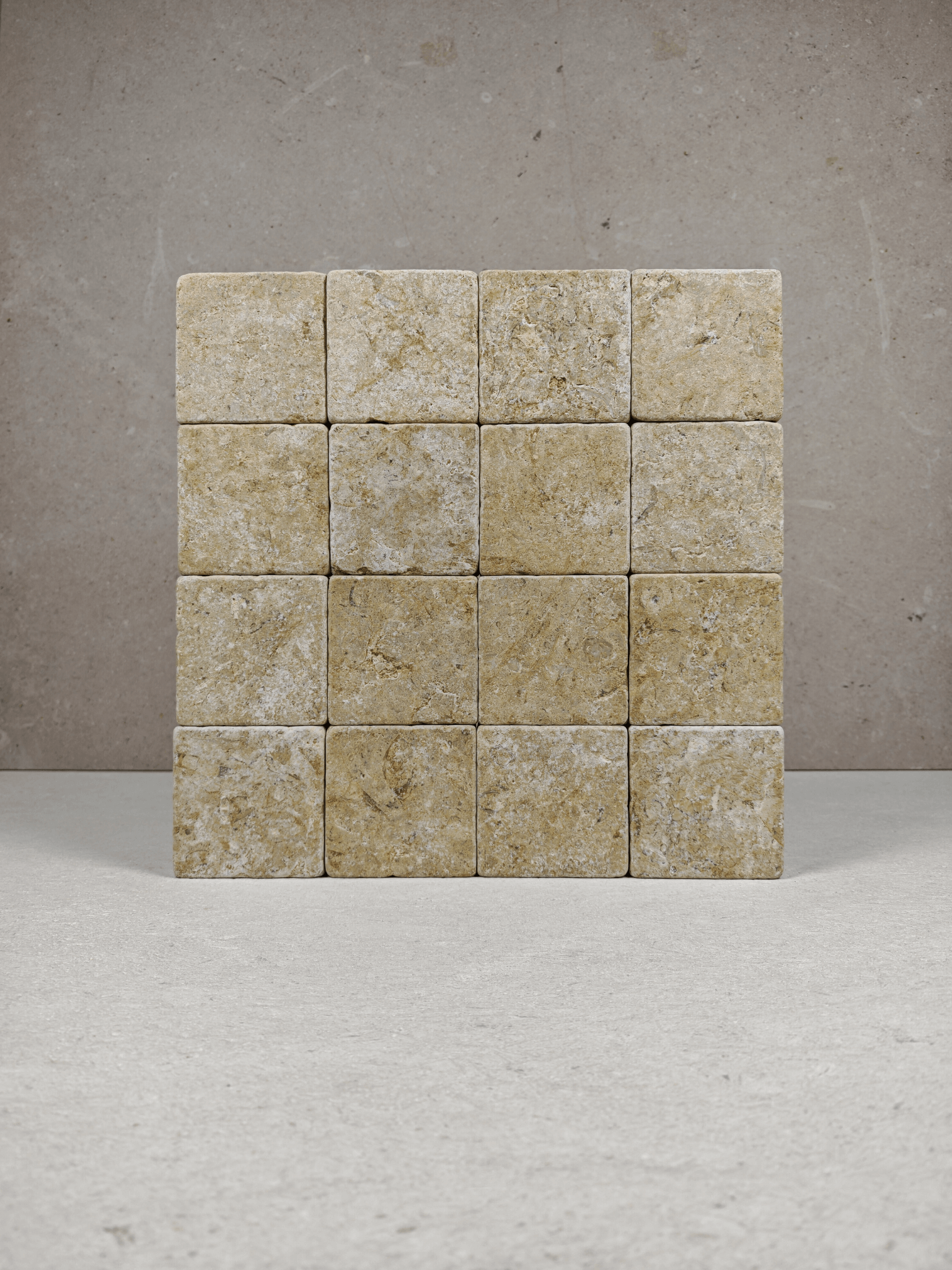 LAPIDE Pavers Sabra SA20 – 32P combines warm tones with a tumbled, etched surface that enhances natural variation. The square format creates a structured yet organic paving rhythm, ideal for garden paths and outdoor living spaces. This dimension offers calm elegance with layered stone character.