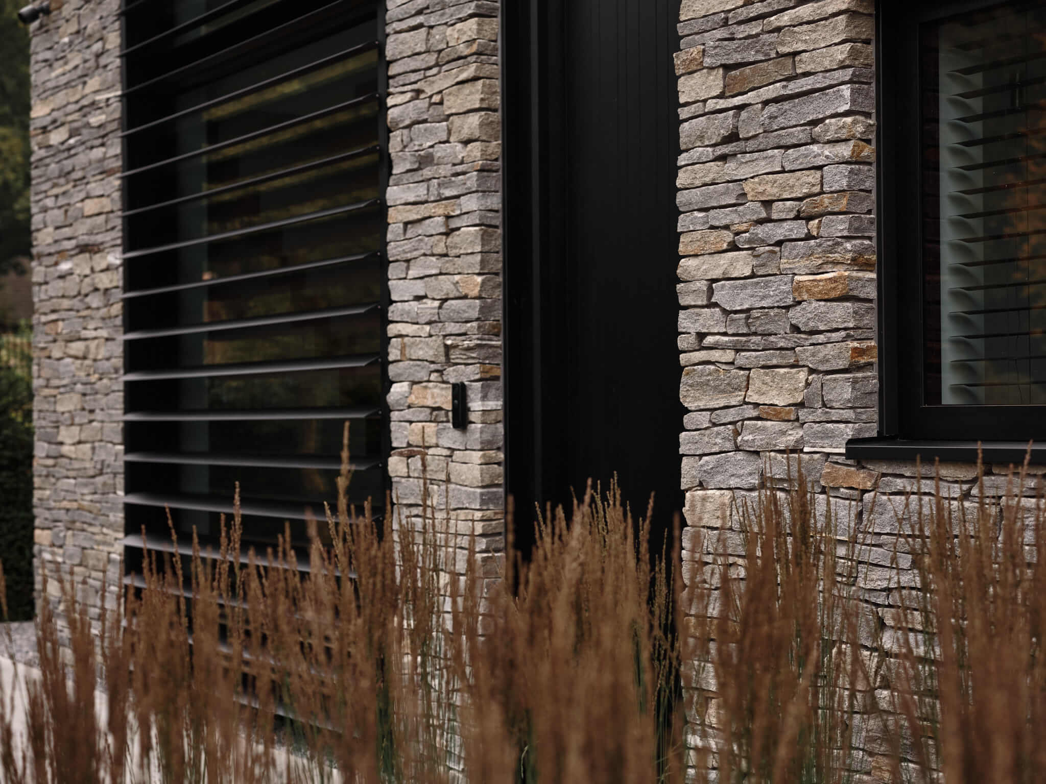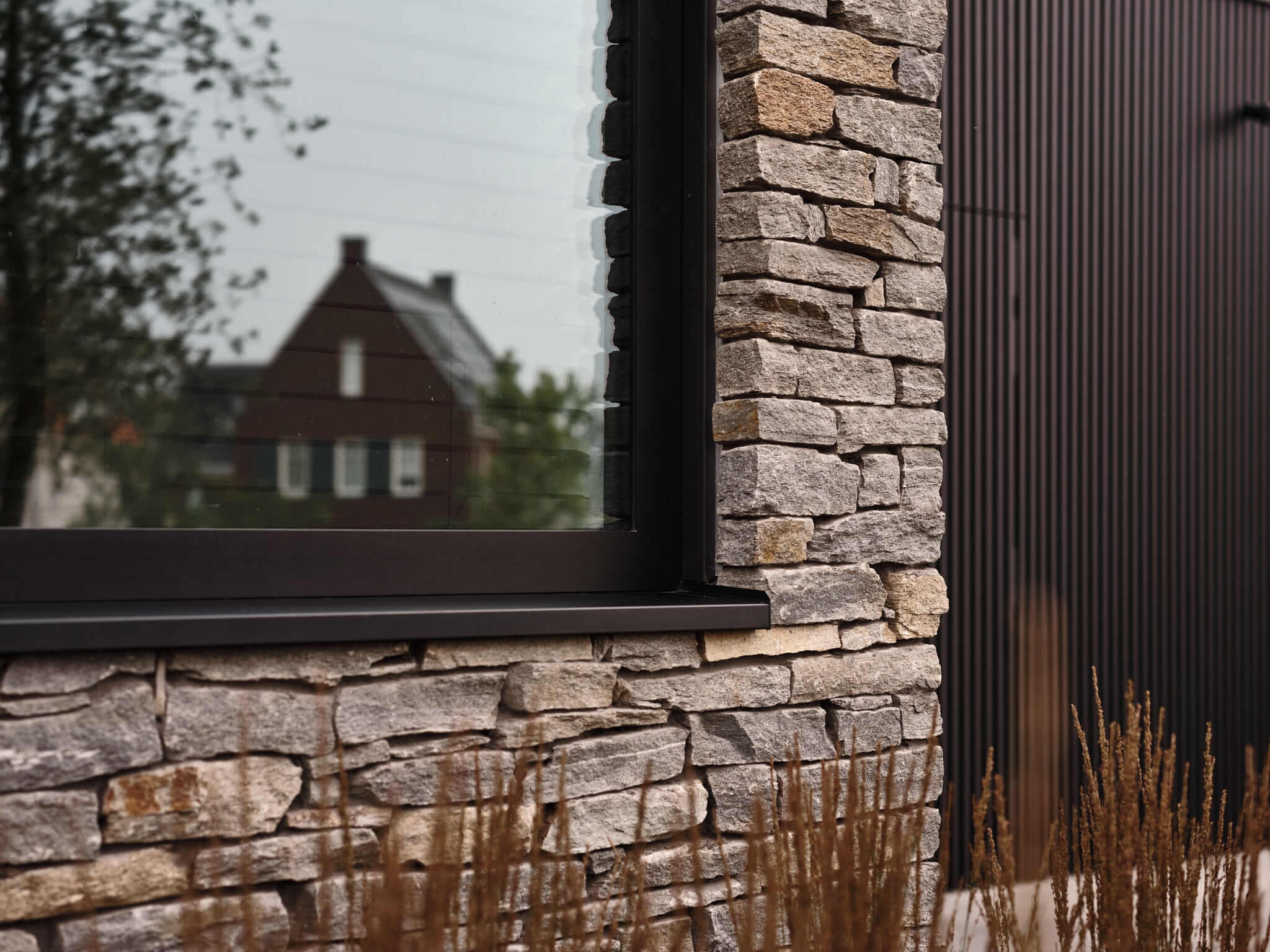 A defining feature of the project is the use of Karlovy Vary KV12R. With their rugged surface structure and deep tonal nuances, the stones introduce depth, rhythm and authenticity. Applied in expressive masonry, the material strengthens the home’s timeless character, proving how natural stone can elevate even the most minimalist contemporary form.